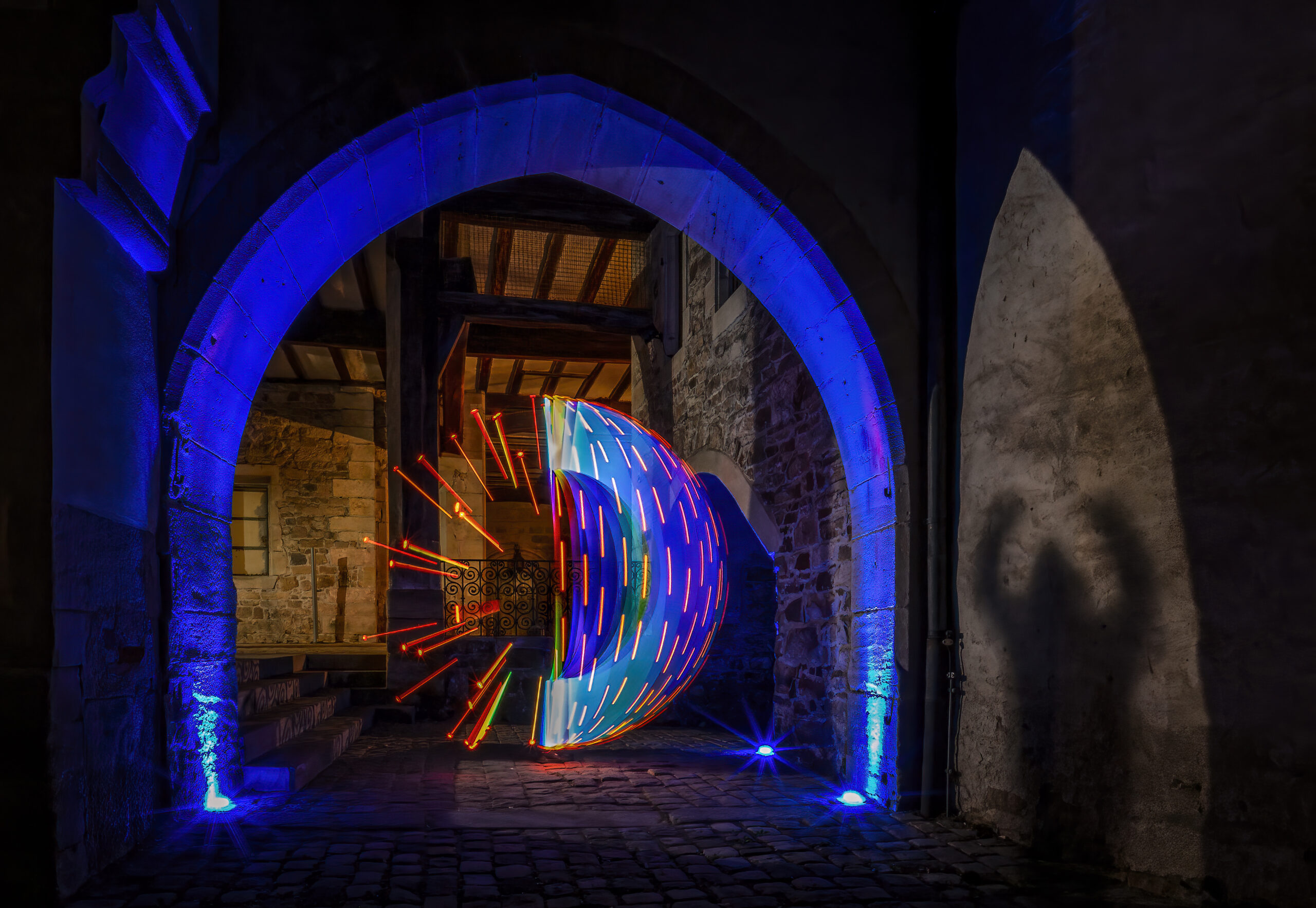 Der Workshop „Malen mit Licht“ ist ein einzigartiges kreatives Erlebnis, das in der stimmungsvollen Atmosphäre der Zehntscheuer Balingen stattfindet. Das Licht wird bewusst ausgeschaltet, um den Teilnehmenden die Möglichkeit zu geben, den Raum neu zu entdecken – durch das Malen mit Licht. Dieser kreative Zugang verbindet Kunst, Technik und Raumwahrnehmung und bietet eine völlig neue Perspektive auf den Museumsraum.